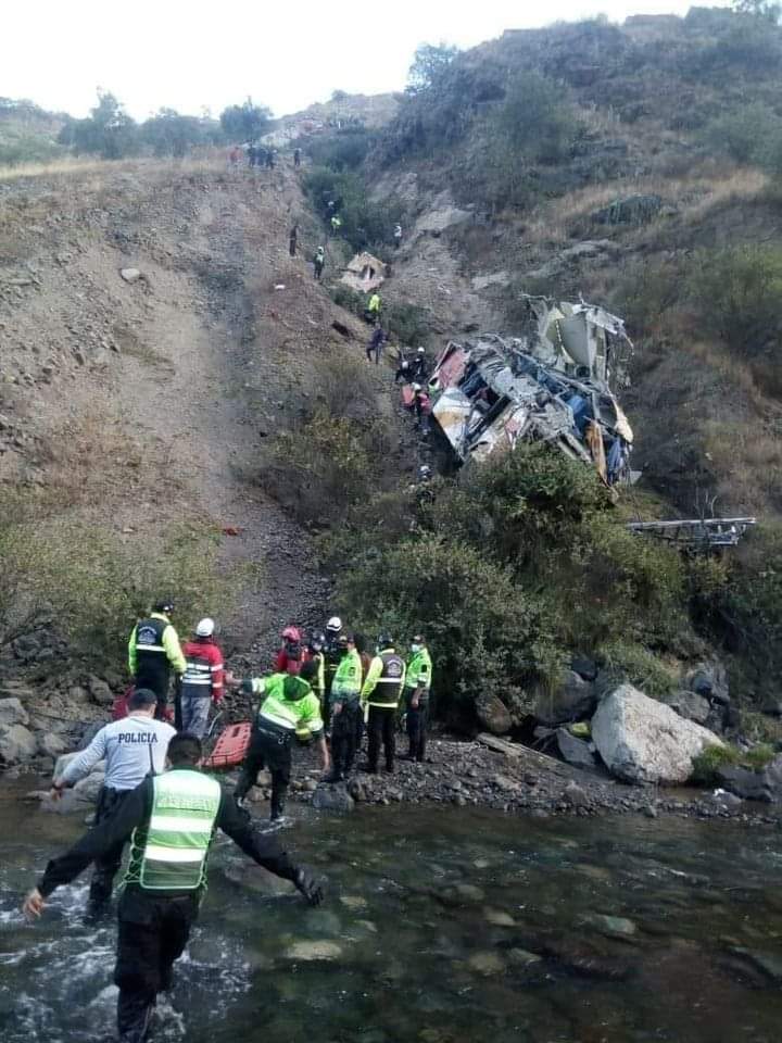 El Chófer del bus se quedó dormido y dio un giro inesperado en una cerrada culva y el bus se fue barranco hacia abajo.