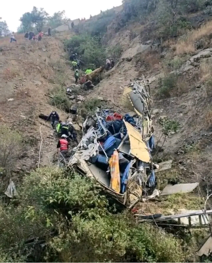 La carretera estaba mojada y era muy estrecho el tramo para doblar y el bus tiene una lamentable caida.